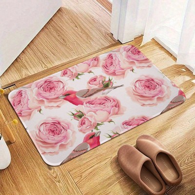 Pink Flowers Bathroom Rugs Winter Bath Mat Absorbent Non Slip Bathroom Mat Christmas Soft Floor Carpet 16x20 Inches
