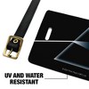 - A TRAVEL MUST HAVE: Set your suitcases apart in style. Featuring a leather strap with buckle and clear slip pocket, our eye-catching luggage tags are easy to spot, making finding them a snap. Printed with vibrant, long-lasting UV and water-resistant inks means no fading or smearing.
