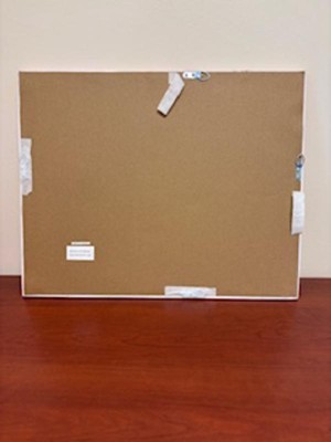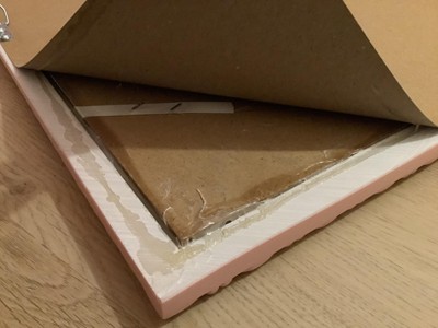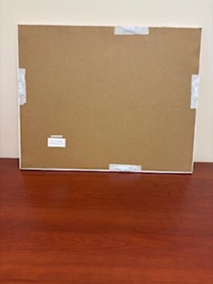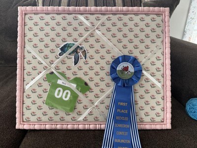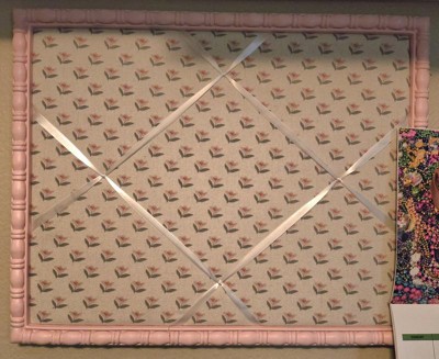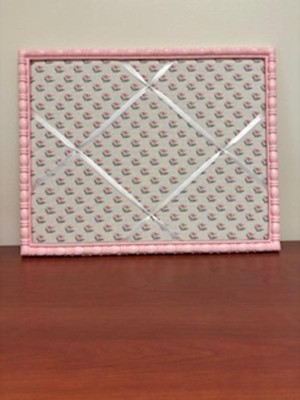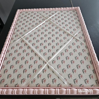 A: Hello Mollie - Thank you for your interest! This Pink Framed Fabric Photo can either be used the strings to attach a memento or a push pin works as well" and the backside of the board are seen in the images. I hope this helps! - Zara