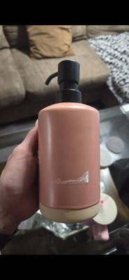 Add a pop of color to your kids' bathroom with this Kids' Soap Pump Dispenser from Pillowfort™. Made of ceramic, this soap dispenser boasts a pump head with a long neck for easy dispensing of contents. This pink soap pump features raised "Wash" text and a contrasting base in a beige hue for an eye-catching look. Compatible with lotions and liquid soaps, this 15.52-fluid-ounce soap dispenser makes a practical addition to their bathroom.