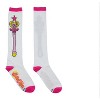 The Pink Moon Wand was Sailor Chibi Moon's first weapon and one of the most memorable too! Adorned with a heart diamond and other dazzling features, these Pink Moon Wand Knee-High socks are sure to help you step up your Sailor Moon sock game.