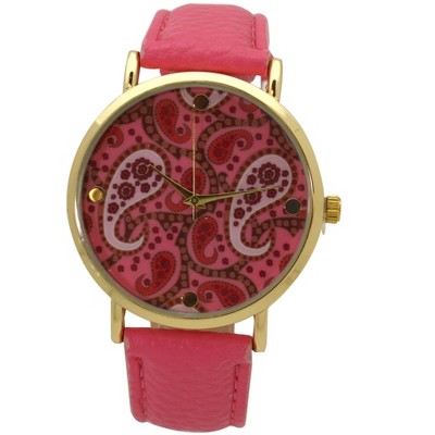 Product Name: Pink Paisley Face Leather Strap Watch