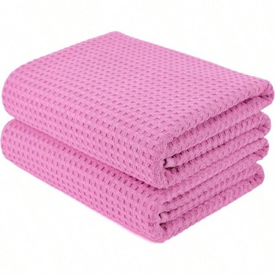 Pink Waffle Weave Microfiber Bath Towels, 60x30in, Set of 2, Quick Dry, Lint Free.