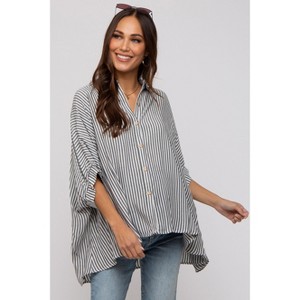 PinkBlush Charcoal Striped Button Up Dolman Maternity Top - 1 of 4