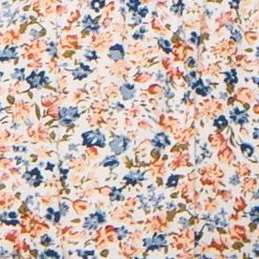 • A: It includes a flattering empire waist, soft flowing fabric, charming floral print, and flutter sleeves.