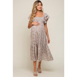 Pinkblush Cream Floral Flutter Maternity Midi Dress - 1 of 4