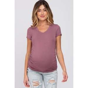 Pinkblush Dark Mauve Basic Short Sleeve Maternity Fitted Top - 1 of 4