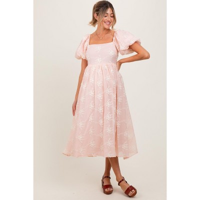 PinkBlush Light Pink Floral Flutter Maternity Midi Dress Light Pink Small