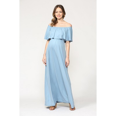 Pinkblush Olive Floral Button Front Tiered Long Sleeve Maternity Maxi Dress