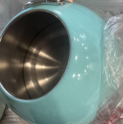 Worst kettle ever! So many issues but let me share the top ones. 1. The handle has metal on it so when you pick it up after water is boiled you burn yourself. Why add the metal to a perfectly good wood handle?? 2. The color has discoloration. I have used this approximately 30 times in a year and its coloring is yellowed by the fill like. Looks awful. This was not a cheap kettle and after a mere 30 uses it is going to the garbage. My old kitchen aid kettle lasted 10 years! Do not buy this.