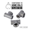 Our fittings are made from malleable iron, machined to specification, and hydrostatically tested to hold pressure. Black pipe and fittings can be used for gas, air, liquid petroleum, and home décor projects. Each fitting is coated in a light grease to prevent rust, and for home décor use, you will need to clean and seal them. Reducing Tees are available in sizes ranging from 2 inches down to 1/8 inch.
