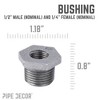 Make your standard fittings more versatile with our black bushings, which can be used in any project that involves connecting a larger fitting with a smaller pipe. They help you get the most out of your DIY creations. Our fittings are made with durable, industrial-grade malleable iron, 100% authentic, and designed to stand the test of time—you will know PIPE DECOR parts and accessories when you hold them. Beauty and beast. Strength and style. These are real industrial fittings for your decorations and designs, so accept no substitutes. Extra pieces and accessories are available for your custom projects and expansions, allowing for plug-and-play as desired.