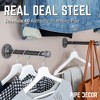 This set of four 10 in. deep hanging brackets complements modern industrial farmhouse, mid-century modern, and rustic vintage décor. The kit uses 1/2 in. pipe and includes all necessary fittings and flanges for assembly, along with screws, anchors, and step-by-step instructions. Each bracket has been weight-tested to hold up to 40 lbs., though it is recommended to screw them into a wall stud for maximum stability. Made from genuine schedule 40 black steel pipe and cast-iron fittings, these hanging brackets combine industrial style with practical functionality.