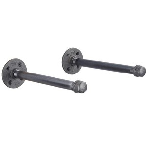 Pipe Decor 10 in. straight industrial shelf brackets come in a set of two, adding eye-catching style and dependable support to your shelves. Crafted from heavy-duty iron fittings and black steel pipe, these brackets pair beautifully with woods of various colors and sizes. They showcase your sense of style and attention to detail while fitting a wide range of aesthetics, including steampunk lighting, industrial, factory, French country farmhouse, vintage, retro reclamation, and DIY. You will know Pipe Decor parts and accessories when you hold them. Beauty and beast. Strength and style. This is real industrial pipe for your creative design needs—accept no substitutes. All Pipe Decor pipe and fittings come coated in a light industrial grease to prevent rusting. Clean and seal each piece before assembly to keep them rust-free, then apply polyurethane spray to protect the surface from rust and scratches.