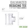 Reducing tees give you the flexibility to build the project of your dreams. You can use a galvanized reducing tee in almost any project where you would normally use a regular tee, as long as the smaller pipe size can support the weight of your design. Combining two different pipe sizes can create a unique visual effect that sets your project apart. Galvanized fittings feature a silver finish that adds a clean, polished look to your pipe furniture. Made from durable, industrial-grade malleable iron, these fittings are 100% authentic and built to stand the test of time. You will recognize PIPE DECOR parts and accessories by their quality—beauty and beast, strength and style. These are real industrial fittings for your decorations and designs, so accept no substitutes. Extra pieces and accessories are available for custom projects and expansions, allowing you to plug and play as desired.