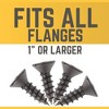 Our convenient 4-pack of wood screws is designed to secure larger flanges into wood shelves or tabletops. Each mounting screw is 0.75 in. long, with a 0.45 in. head. This 4-pack of #14 x 0.75” alloy screws fits all flanges between 1” and 2”, can be used to secure flanges to wood surfaces, and is not intended for mounting flanges on walls or drywall.