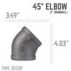 Pipe Decor 2 in. Black 45 Degree Elbow