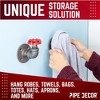 These hooks complement a variety of styles, including modern, farmhouse, industrial, rustic, retro, vintage, and steampunk. Ideal for laundry rooms, kitchens, garages, entryways, sheds, offices, mudrooms, and children’s bedrooms. Made from real iron and steel for long-lasting durability, they are suitable for indoor and outdoor use when sealed to prevent rust. Each kit includes hooks, hardware, flanges, fittings, and step-by-step instructions. Each spigot hook measures 3 inches wide by 4 inches high and 3 ⅝ inches deep.