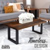 This versatile coffee table complements a wide range of styles, including industrial, French country farmhouse, vintage, retro, reclamation, and mid-century modern. The reclaimed wood tabletop is responsibly sourced in North America through a forest restoration program and is handcrafted, hand-stained, and hand-sanded for a natural, authentic look.
