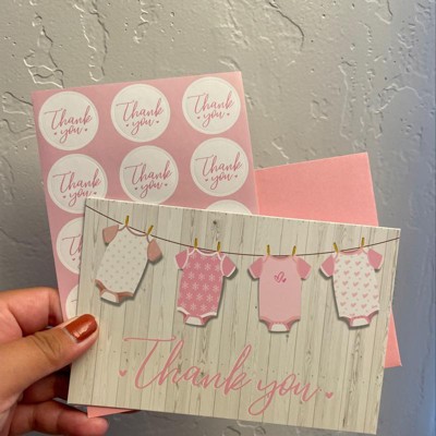 Pipilo Press 60-Pack Girl Baby Shower Thank You Cards with Envelopes and Stickers for Gender Reveal Parties, 6x4 in