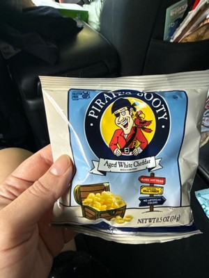 - Pirate's Booty gluten-free aged white cheddar cheese puffs in a 10-ounce family-size bag