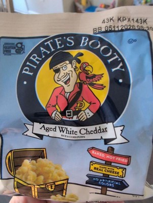 Pirate's Booty Aged White Cheddar Puffs are made with real cheese and other ingredients that are easy to enjoy. These delicious, baked not fried puffs are crafted from rice and corn, delivering a crunch kids love! With no artificial colors, you can feel good about sharing these corn puff snacks with your crew. Packed in a 10-ounce family-size bag, Pirate's Booty is perfect for snacking at home, taking on the go, packing in lunchboxes, and more, making this family size snack a real treasure. It's yo-ho wholesome!