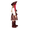 Is your girl ready to embark on a mission of a lifetime with her fellow ship mates? She'll soon be boarding the galleon and setting sail, in the hope of finding treasure, wearing the Kids Pirate Girl Costume. Working alongside the quirky Jack Sparrow, she'll need to search far and wide, and even fight off a few other pirates along the way. It's a great costume choice for World Book Day or a pirate themed party. The Kids Pirate Girl Costume includes a long-sleeved, pirate-style dress. The dress features an off-the-shoulder built in top, a brown corset vest that fits on over the top and a striped red and cream skirt. Also included is a brown and gold buckle belt, a sash, a brown pirate hat and a set of black boot covers. “Who's ready to walk the plank?”