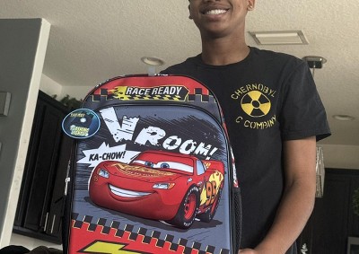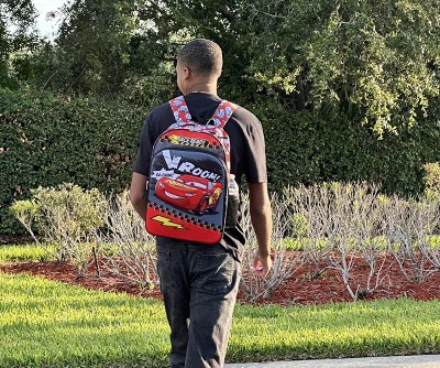 Great backpack for my senior who loves lightning McQueen- the lightning bolt lights up! Super cute and large enough to hold his laptop.