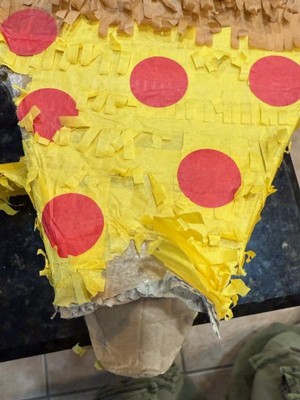The pizza design is adorable, and I was impressed by how much candy it could hold for its size. Unfortunately, that’s where the positives end. The entire thing was covered in packing tape, making it nearly impossible to break open. I had two kids hitting it for 23 minutes, and all they managed was a small tear at the bottom. It became clear that the only way to get the candy out was to cut the tape or rip it open by hand—which defeats the whole point of a piñata. It ended up being more frustrating than fun for the kids. Honestly, it would be better used as a cute decoration rather than something meant to be broken open. Disappointing experience.