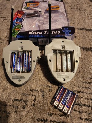 [This review was collected as part of a promotion.] These are easy to use with great sound. The button on the side makes it easy to push and talk. These walkie talkies bring PJ Masks robot fun to playtime and my grandchildren had a blast while playing with them. They run on 4 AAA batteries each. These walkie talkies bring the action packed fun of PJ masks to playtime.