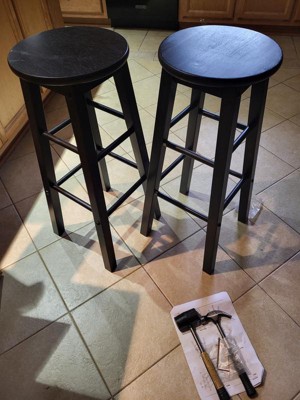 [This review was collected as part of a promotion.] I’ve been using my bar stools for about a month now and I love them. These are two 29 inch round bar stools. The stools are black in color and modern. The stools go great with my decor and I love them. The stools were very easy to assemble and came with easy to read instructions.