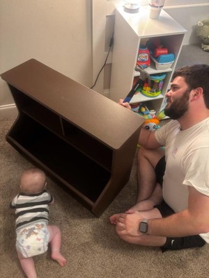 [This review was collected as part of a promotion.] Upon opening the package I found easy to follow instructions. It is made of sturdy materials. I really like the color it looks nice in just about any room. It works perfectly for toys and has a great place for books. It is the perfect height for our little ones to reach everything on it. We are pleased with this product and would recommend.