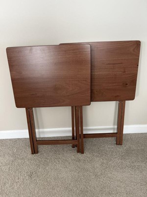 [This review was collected as part of a promotion.] Wow love my new folding tables easy to put together right out of the box so I was happy and they are strong tables These tray tables expand and collapse with ease. Rectangular in shape and made from solid wood, these tables feature a flat, spacious, conventional tabletop that makes them perfect for versatile use.