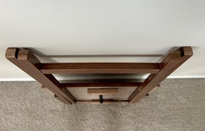 [This review was collected as part of a promotion.] The set of two folding TV tables is nice in appearance, but is not the quality product that I expected. Measuring 26” tall, they are a good height for placing a beverage, snack, boo, or small decorative item on them. The table surface size is 14.5”x19 inches.I would not place anything of significant weight on the table, as the legs are locked in place by a strip of fabric ribbon. Once that ribbon strap breaks or frays, the integrity of the table is compromised. The feet of the legs do not have any protective covering, making them able to scratch wood flooring. The color of the honey oak is a rich chocolate brown and appears to be solid wood, as are the legs. I would recommend these for occasional use only, and not as a long term answer to a table need..
