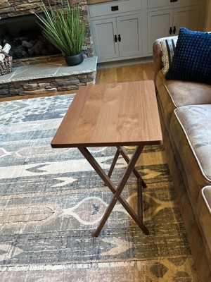 [This review was collected as part of a promotion.] Wow love my new folding tables easy to put together right out of the box so I was happy and they are strong tables These tray tables expand and collapse with ease. Rectangular in shape and made from solid wood, these tables feature a flat, spacious, conventional tabletop that makes them perfect for versatile use.