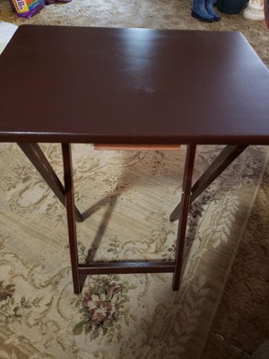 [This review was collected as part of a promotion.] I have had several tv tables in the past and by far these are the best. They are strong and sturdy, easy to unfold and fold and I really like the dark wood look. Easy to clean and well constructed.