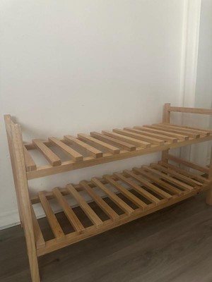 [This review was collected as part of a promotion.] I was desperate for a solution to the shoe clutter that always accumulates right inside our front door, and this two-tier shoe rack has been the perfect answer. It's a fantastic blend of form and function, and I couldn't be happier with the purchase. Quality & Assembly (5/5) First off, assembly was incredibly simple. The instructions were clear, and I had the entire rack put together in less than ten minutes with just the included tools. It immediately felt sturdy and stable—no wobble at all, even when fully loaded. The natural wood finish is beautiful; it looks far more expensive than it is and perfectly complements our entryway decor. Capacity & Design (5/5) As you can see, this compact design handles our needs perfectly. The two tiers comfortably hold about 6 to 8 pairs of adult shoes (sneakers, boots, and flats). We even found that the space underneath the bottom shelf is useful for quickly tucking away slippers. It takes up minimal space while maximizing storage, instantly transforming a messy corner into a neat and welcoming area. If you're looking for an attractive, well-built, and space-saving solution to tame your entryway chaos, I highly recommend this rack. It truly makes a difference!