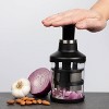 - Rotating stainless steel blades are perfect for chopping onions, garlic, nuts and more