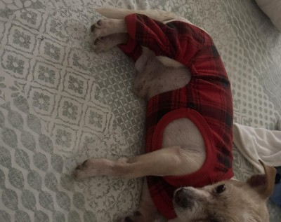 So cute and apparently comfortable because my dog didn’t try to take it off!!