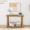 - Versatile Design: Console table with storage features a timeless design and is the perfect accent to any living room, dining room, bedroom, or entryway; Solid wood shelf adds built-in storage to any space