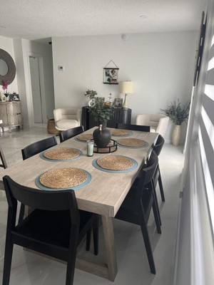 This table is absolutely gorgeous! I found P&B online and when I saw this table, I knew that I found exactly what I was looking for. The chairs are also super comfy and I love that it can host 6 people. I just had my first dinner party in my new house last night and it was perfect! Obsessed with this dining set is an understatement!