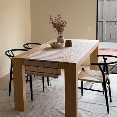 Give your dining room the best combination of modern style and craftsmanship with the Plank+Beam Modern Dining Table. Perfect for your family and friend gatherings, this long dining table for 6 seats everyone comfortably. Crafted with solid pine wood and clean, non-toxic finishes, this kitchen table has a strong and sturdy design that complements your healthy living space. Stylish and versatile, this dining room table can be used as a kitchen table and dinner table or as a large table for office or game room. Choose between unique wirebrush finish for a textured look that highlights natural wood grain or a smooth, flat finish for a sleek, contemporary feel. This solid wood dining table pairs with our Modern Dining Bench (sold separately) to create the perfect matching dining table set. Dining table is easy to assemble with instructions, tools, and hardware included. Bring functional style to your spaces with the Modern Dining Table from Plank+Beam.