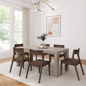 Plank+Beam 72" Modern Solid Wood Dining Table Set, + 6 Chairs Walnut