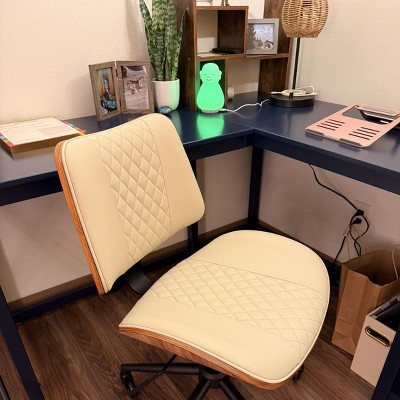 Beautiful color, and small enough size to fit in an office that isn’t massive while still providing a lot of work space. It absolutely requires two people to assemble and is kind of a hassle but once it’s put together it’s sturdy and very nice. Make sure you have someone help you assemble it because you’ll need to physically hold pieces together to be able to screw it together. Worth it, though, and I’d buy it again.