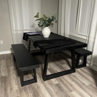 - Quality Wood Dining Table and Benches: Farmhouse dining table features a tabletop with 3 solid wood panels and solid wood legs for a premium look and durability; Kitchen table and solid wood benches feature non-toxic finishes for a healthy home