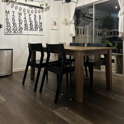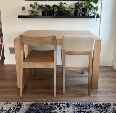 I ended up going with these chairs to complement my plank and beam dining table. I love that they are solid wood. After almost a year of owning them, I don’t think I would purchase these again. We have a busy home and they get a lot of use. The backing of the chair is kind of wobbly and fighting the screws hasn’t helped that much. Because of how the chair backs are angled, I think we have to keep tightening the screws regularly. However, since tightening the screws doesn’t help that much the chairs just feel a little too fragile. Otherwise, the chairs are nice looking and a good weight!