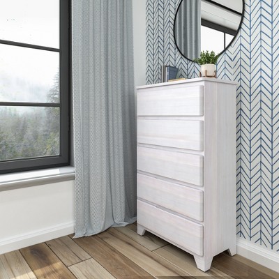 Plank+Beam Solid Wood Classic 5-Drawer Solid Wood Dresser, Storage Dresser for Bedroom, Chest of Drawers, Walnut