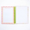 - Spiral-bound with a pink chipboard cover