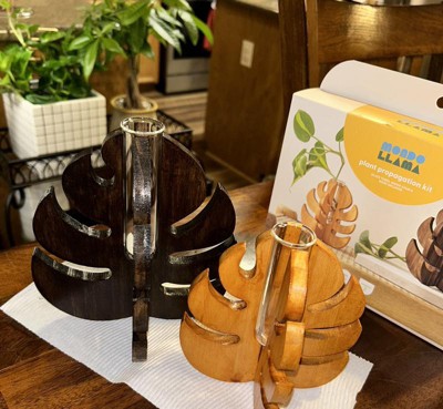 The Plant Propagation Garden Craft Kit from Mondo Llama™ is a cool creative outlet that leaves you with a decorative finished product. This kit includes four wood shapes, two jars of stain, two foam brushes, two glass tubes and plastic gloves — everything needed to make a mini garden in your home after propagating a plant clipping to grow and enjoy.