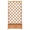 - This rustic brown wooden planter aims to enhance your garden's charm while giving you a practical way to grow plants. With its vertical trellis, it's perfect for supporting climbing plants, turning your balcony or patio into a green paradise bursting with color, ideal for nature lovers. Ample Storage: The planter gives you plenty of room for your plants, making it easy to create a lively outdoor space filled with beauty.Appealing Design: With its rustic vibe, this planter goes well with different decors, adding visual interest to any garden or patio.Durable Material: Made from solid fir wood, this planter is built tough, ensuring it lasts through the seasons.Versatile Use: Great for both indoor and outdoor spaces, you can pop this planter in gardens, balconies, or patios.Trellis Feature: Comes with a trellis, perfect for supporting climbing plants, adding height and charm to your garden d¨¦cor. Color: Brown Pattern: Trellis (An open framework or lattice of interwoven or intersecting pieces)Shape: RectangularMaterial: Natural WoodFinish: Varnished Indoor/Outdoor: Indoor / OutdoorRoom: Garden and terraceCapacity: Plenty of space for plantsDimensions: 13.8 x 35.4 x 70.9 in (W x L x H)Weight: 15.96 lbsDrainage: YesDelivery Contains: Planter with trellis (liner not included)Assembly Required: YesRecommended Number of People for Assembly: 1